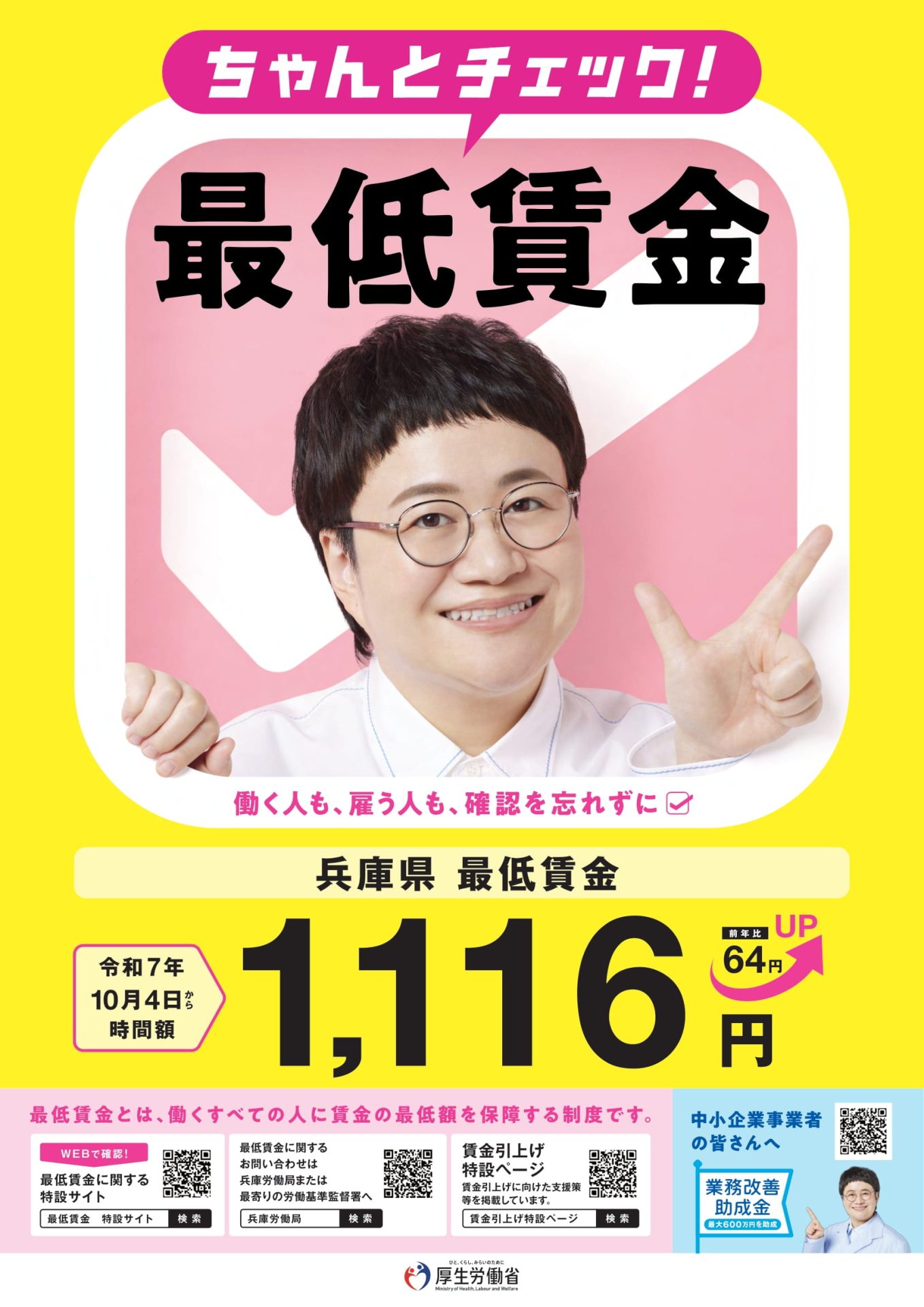詳細は兵庫労働局ホームページ 最低賃金のページまたは下記まで。